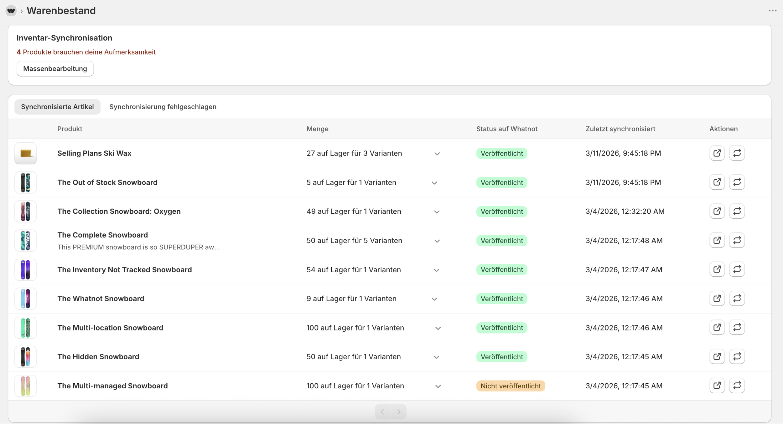 Anschließend kannst du alles innerhalb deines Shopify-Adminbereichs verwalten. Produktdetails, Preise, Zustand, Varianten und Inventar werden automatisch mit Whatnot synchronisiert. So sind deine Angebote immer genau aufgelistet und dein Lagerbestand ist auf beiden Plattformen aufeinander abgestimmt.