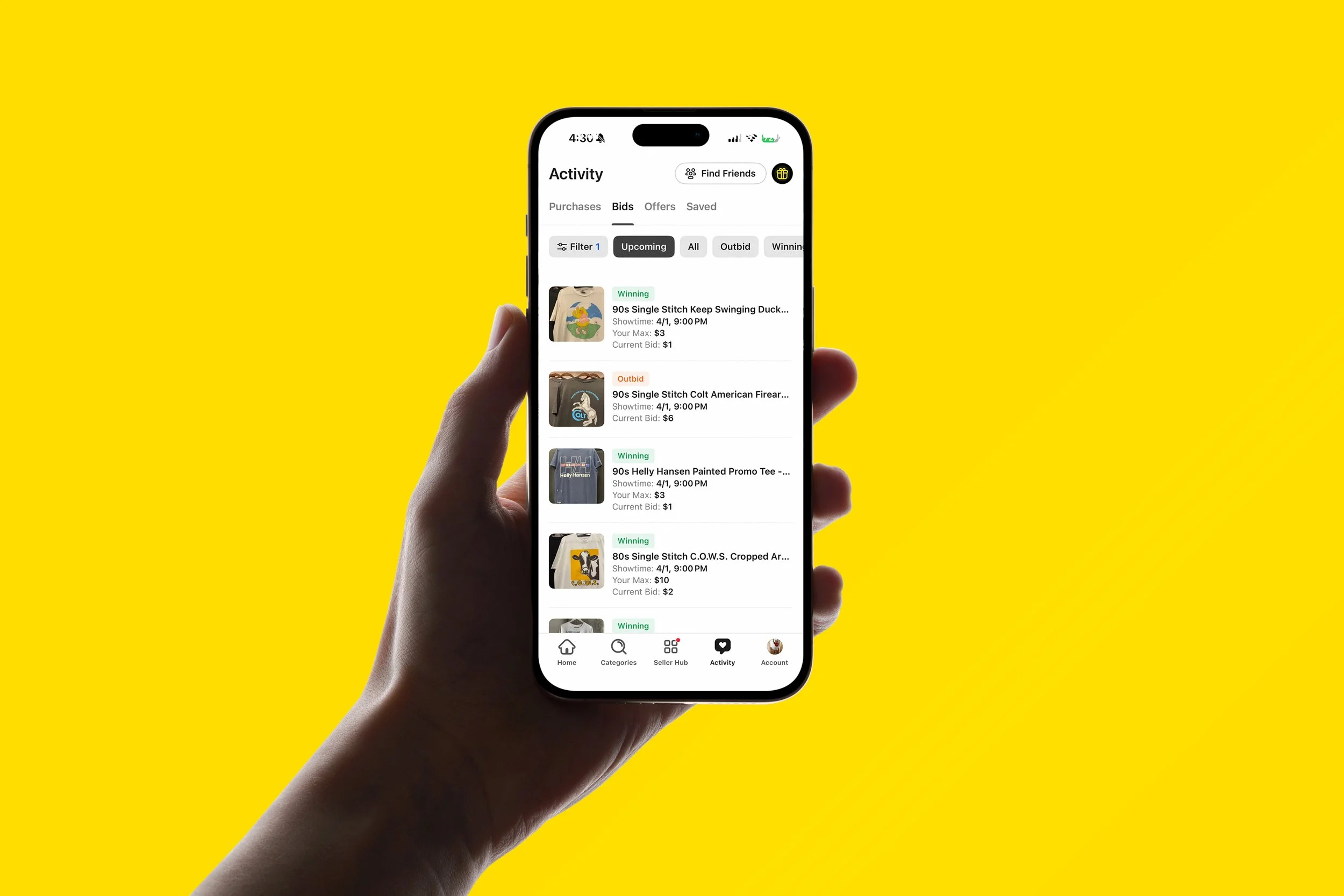 Buyers can now track all their pre-bids in one place in the Activity Tab under “Bids,” with clear status updates like Winning, Outbid, Expired, Won, or Lost. That way buyers know when they’ve been outbid and are more likely to jump back in. Keep in mind, this tab is dedicated to pre-bids placed before an item is run, and does not include bids made live during a show.